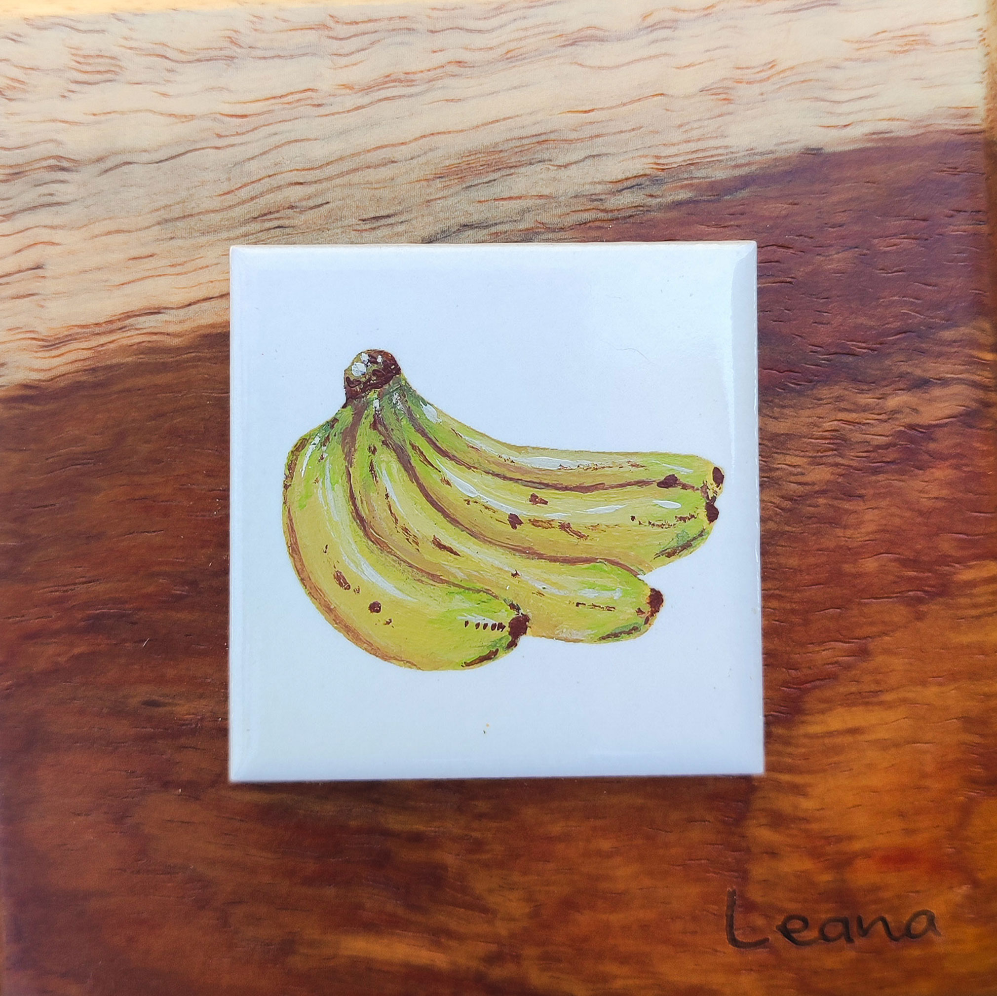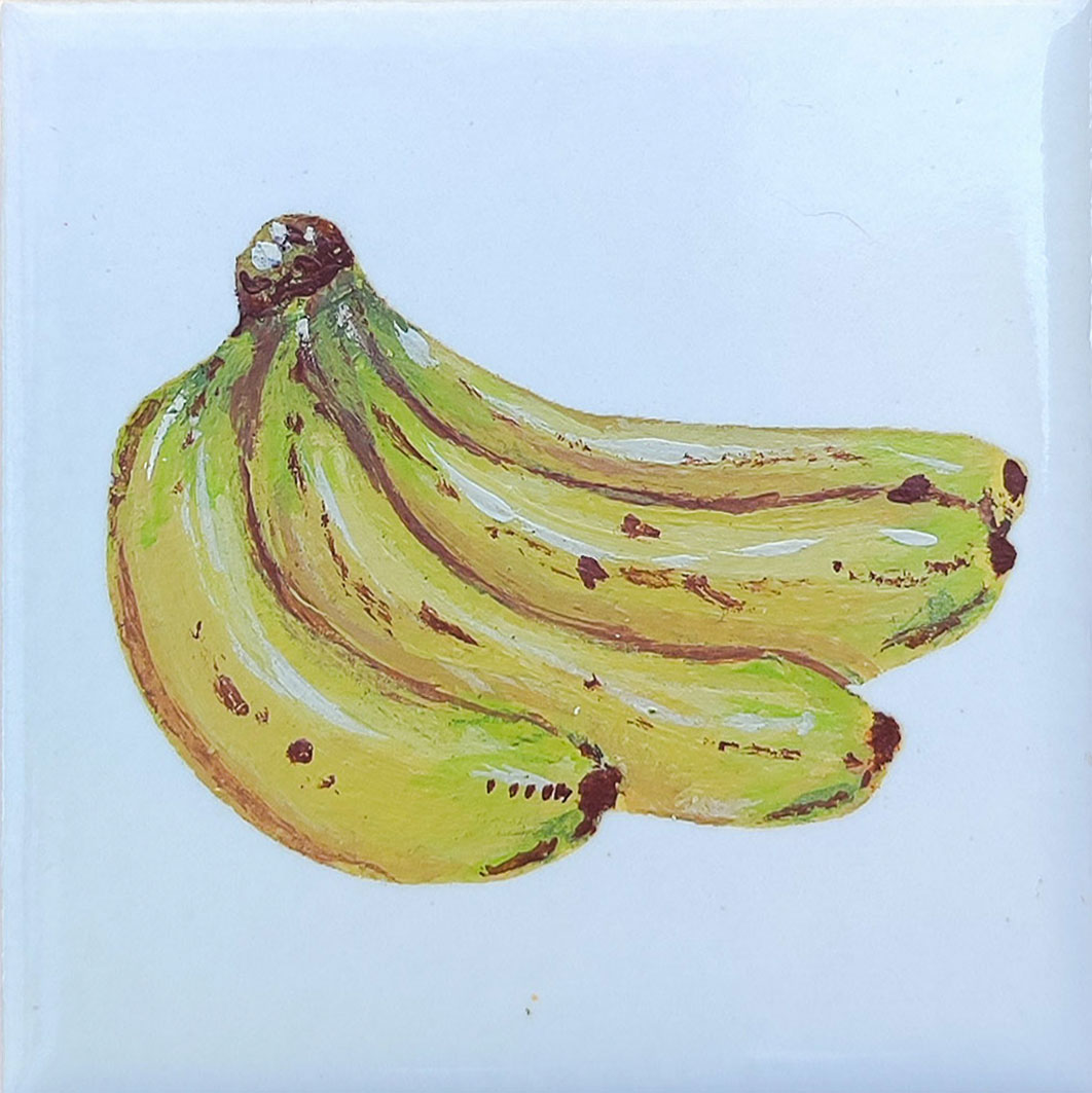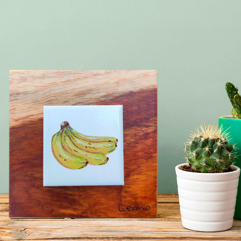 5x5cm Engraved and handpainted ceramic tile, mounted on a 10x10cm wooden block of solid Kiaat.