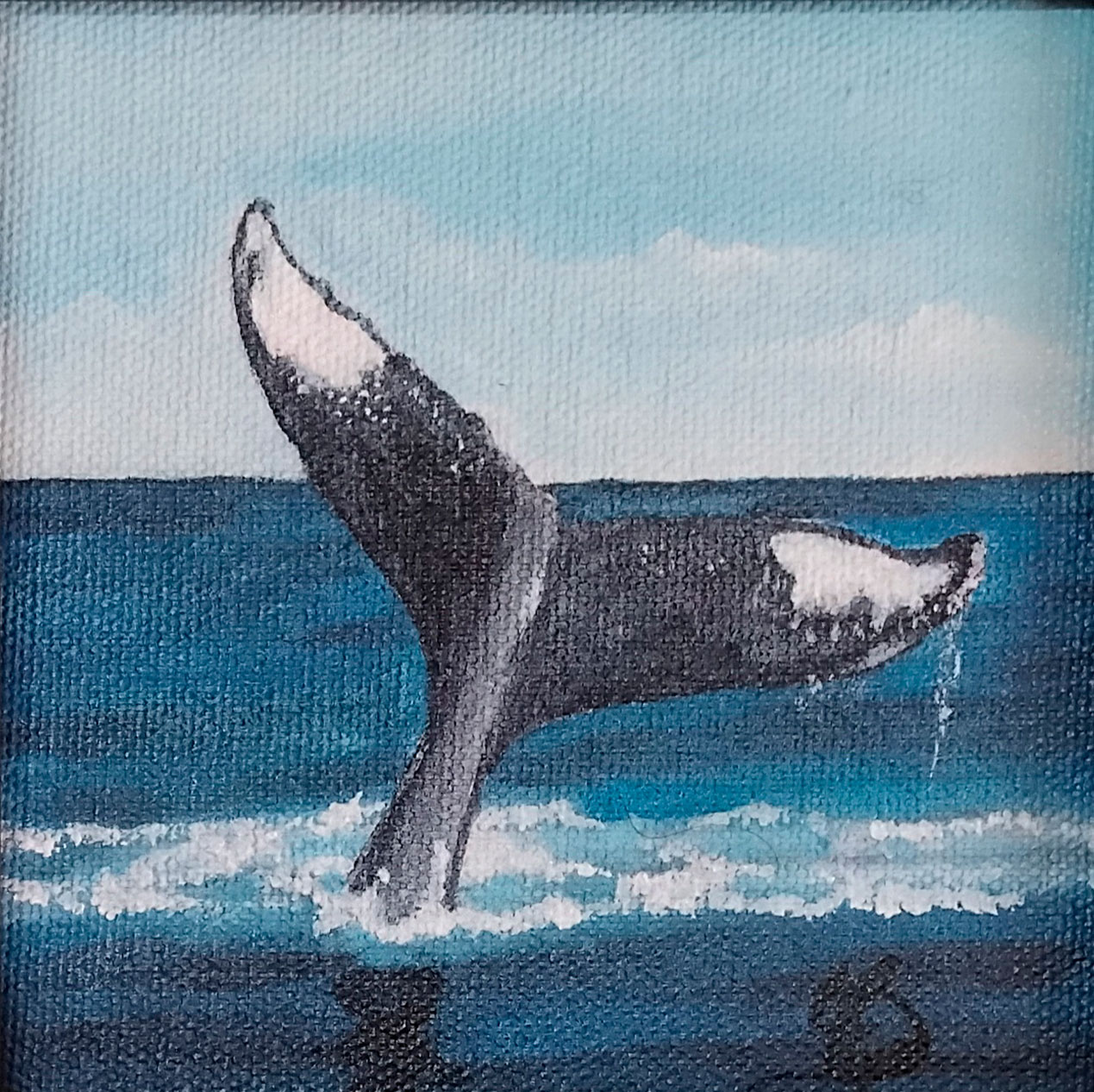 There is nothing like a seeing a whale tail dissappear beneath the waves. This paining catches the thrill of that fleeting moment.